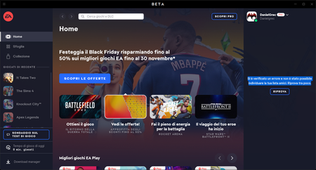 When I log into EA App (Beta) with the same login it can't find my friends list