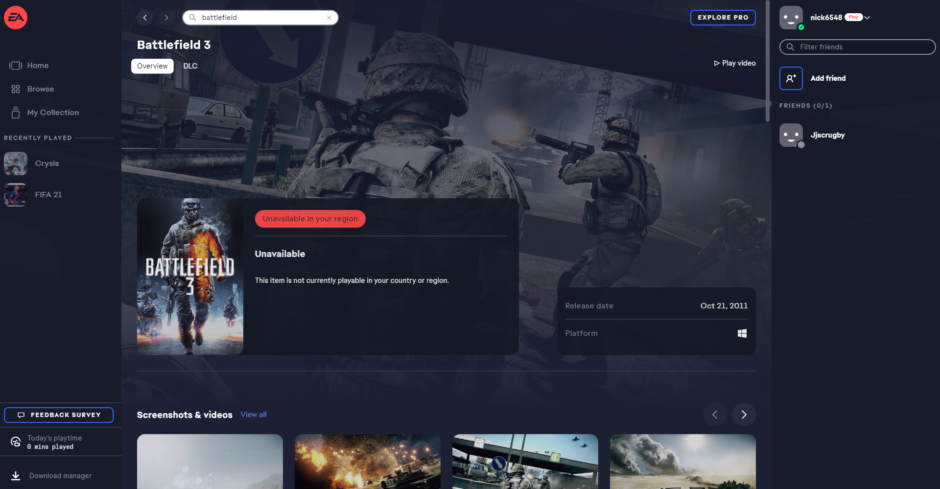 In EA Play Games "Unavailable in your region" but Origin