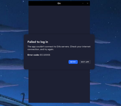 [INFO REQUEST] Error Code: EC:10005 In EA app
