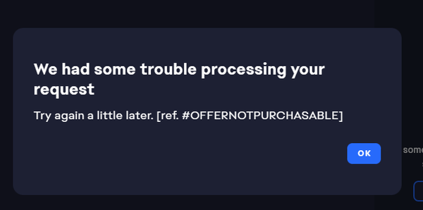 Could you share a little more info about your issue? What are you trying to purchase exactly, for example?