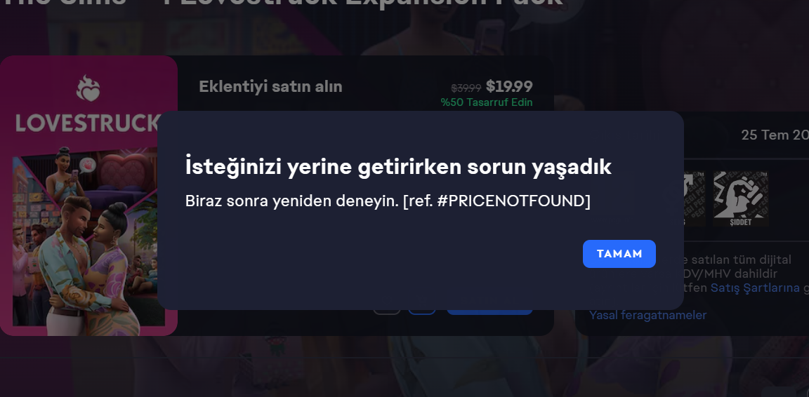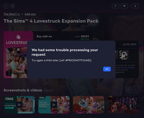 "pricenotfound" error for players trying to purchase Sims 4 DLC