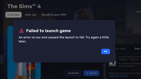 [CURRENT ISSUE] Sims 4 Failed to Launch Game | EA Forums - 12561664