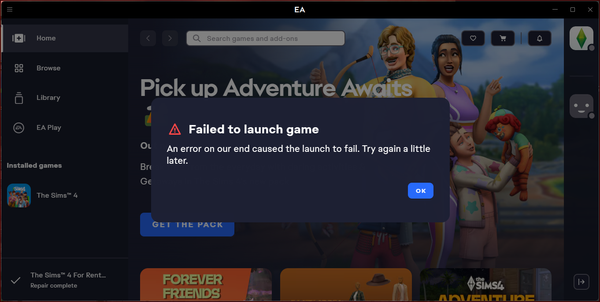 [CURRENT ISSUE] Sims 4 Failed to Launch Game | EA Forums - 12561664