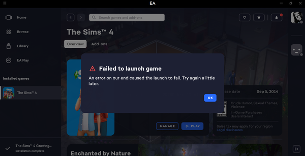 [CURRENT ISSUE] Sims 4 Failed to Launch Game | EA Forums - 12561664