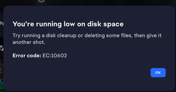 Also. yes I have downloaded the game to the F drive which has the most storage of my drives