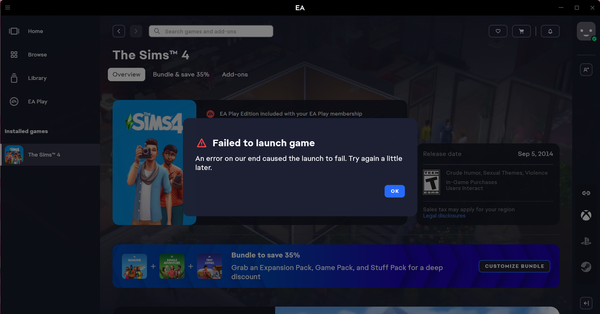 Having issues with the EA app? Join us to report bugs, and find help with downloads, DLCs, purchases, and login errors.8,362 PostsLatest Activity: 3 hours ago