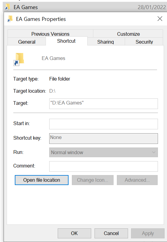 Unable to change game installation directory from EA desktop app