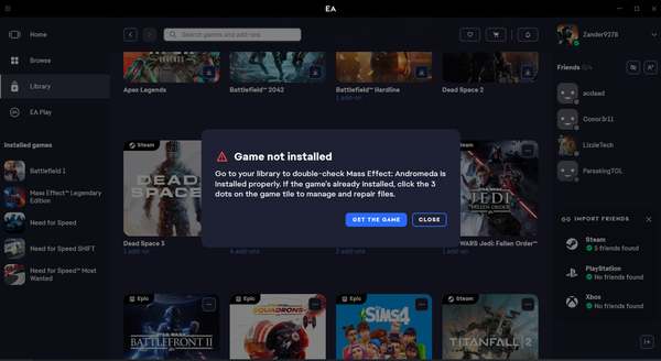 Attempted to find the solution the EA app gave in the screenshot, but it doesn't show me since it's a Steam game