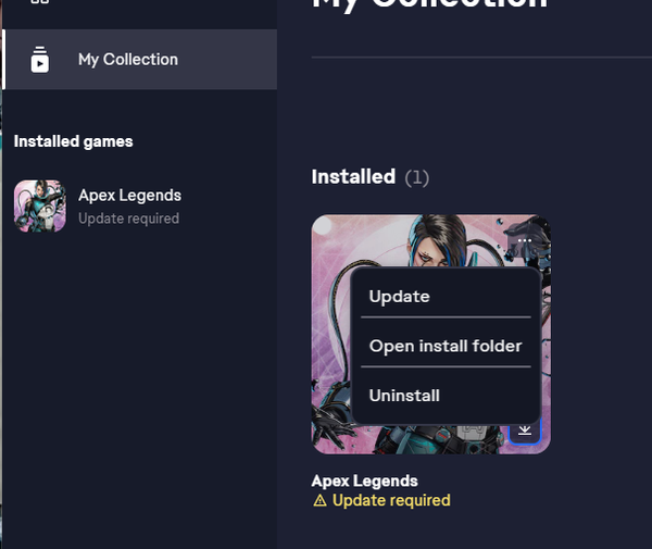 Steps: How can we find the bug ourselves? 1. Go to My collection 2. Click the '...' menu on a game.