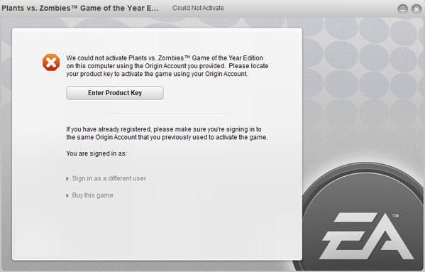 "We could not activate XYZ on this computer using the EA Account you provided"