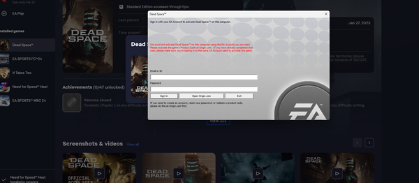 "We could not activate XYZ on this computer using the EA Account you provided"