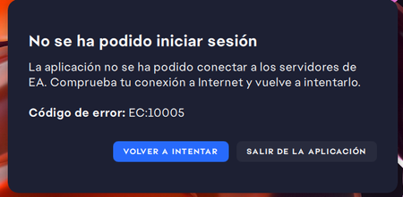 Intento jugar ea fc 26 y no puedo ya que me sale un cartel que dice que no se ha podido iniciar sesión porque la aplicacion no se conecta con los servidores de EA y me tira error EC:10005 y comprobe ...