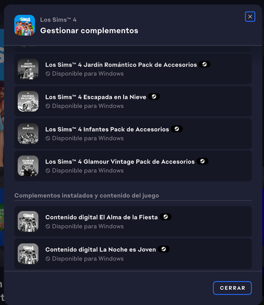 - Una vez completado, tus packs y expansiones aparecerán como disponibles para descargar