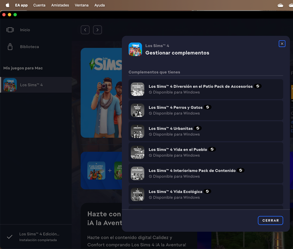 No, ya lo he instalado desde la EA app y me sigue diciendo "Disponible para Windows", ¿que puedo hacer?