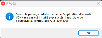 zeuboulooSeasoned Newcomer8 months agoBug d'installationJ'ai acheté fifa 23 il y a pas longtemps et j'ai ce genre de bug d'installation quelqu'un pourrait m'aider