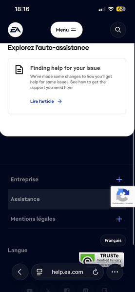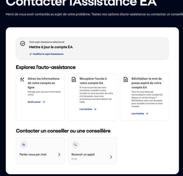 Bonjours, je suis vraiment découragée je suis un joueur apex legend et j’ai jouer pas mal et la j’essaie de me reconnecter a mon compte et ea me dis que mon mot de passe a expiré et donc de le réinitialiser alors ca me dit qu’il vont m’envoyer le email pour le réinitialiser par courriel sauf que je ne reçois jamais le courriel j’ai essayer plusieurs fois sur plusieurs jours et ca donne rien et j’ai essayer de contacter le support mais lorsque je fais une requête elle ne s’envoie jamais alors que ca me dit que la requête a été envoyer mais quand je vais dans mes dossiers pour voir mes requêtes il n’a rien et je n’arrive pas à trouver comment contacter un humain, j’ai contacter Xbox il ne peuvent rien pour mais j’ai contacter Outlook et il me dise que le problème ne viens pas de eux et là je suis à cours d’idée puisque j’ai toute essayer et j’ai mis plus de 700$ dans apex sur ce compte sauf que le compte en question n’est pas le même que celui avec lequel je fais cette discussion c’est mon autre. J’espère qu’il y aura quelqu’un qui sera en mesure de m’aider
