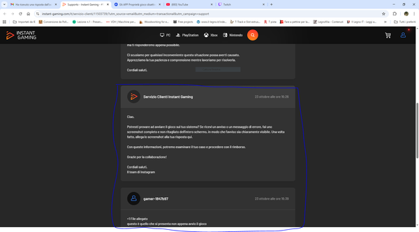 - I consulenti EA non potranno aiutarti con giochi che hai acquistato da rivenditori non autorizzati o illegalmente.