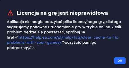 Czyszczenie pamięci podręcznej EA App jest jedną z tych zalecanych rzeczy która nie pomogła, robiłem wszystko co było zalecane przez EA jak i co znalazłem w internecie, nic nie pomogło, ale znalazłem swoje rozwiązanie. Wyłączyłem internet w komputerze, spróbowałem włączyć grę, wyskoczył komunikat że jest potrzebny internet do licencji, włączyłem internet i gra się odpaliła. Za to powstaje tutaj nowy problem, ponieważ gra się łączy z autolog z którym się nie połączy ponieważ serwery są wyłączone, ale jest na to rozwiązanie: