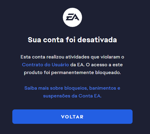 No email recebi que a conta foi bloqueada TEMPORARIAMENTE por 14 dias, e no webapp / app diz que foi banida PERMANENTEMENTE.