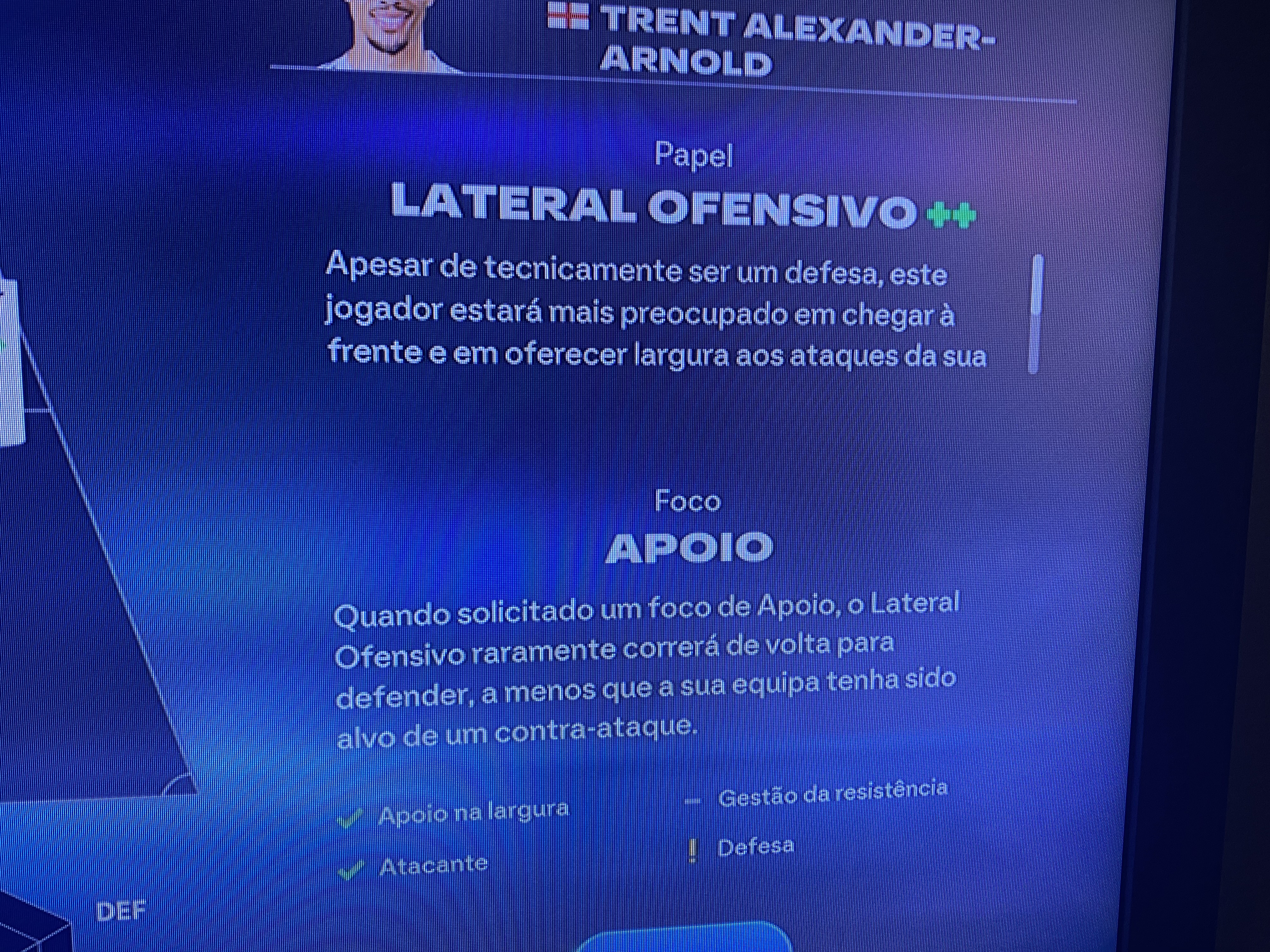 Durante o processo de ataque da equipe, mesmo no plano de jogo colocando ofensivas laterais, os mesmos não se projetaram no ataque, ficaram atrás na defesa. No EAFC 25, quando colocamos operações laterais, eles subiam no terreno (iam para a frente) e os extremos ficaram como os internos, como acontece na realidade. No EAFC26 isso não está a acontecer. Gostava que essa situação fosse revista. Provavelmente existe algum BUG no plano de jogo para depois os jogadores não executarem as funções em campo.