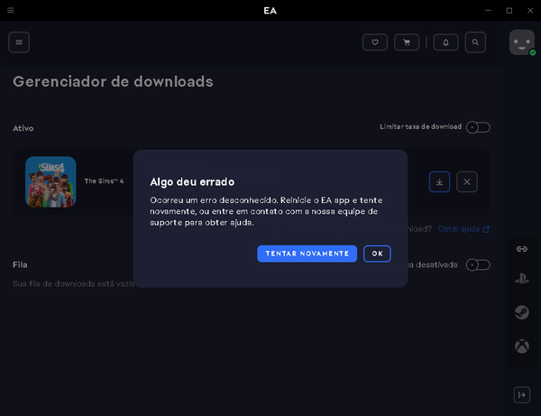 Se não resolver, desinstale e reinstale o EA App — não vai apagar seus jogos, apenas o gerenciador.