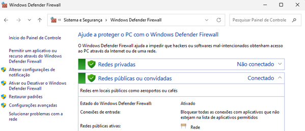 Abra o Firewall do windows, clica em restaurar padrões