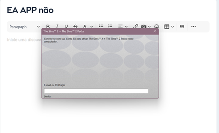 Boa tarde, Tenho EA APP, estou devidamente logada com minha conta na EA. Tive que desinstalar o jogo The Sims 2 Legacy e instalar de novo, sendo que estava funcionando normalmente. Fiz isso e qua...