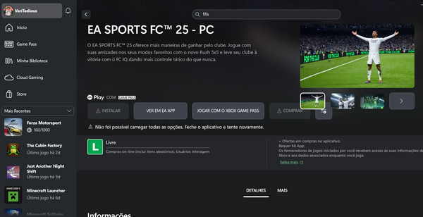 Tenho Xbox Gamepass porém não consigo instalar jogos do EA App