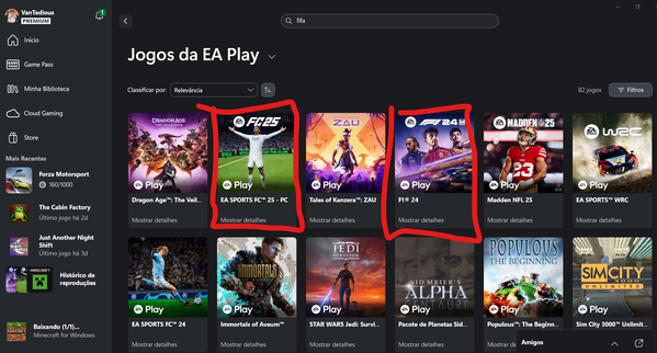 Problema: ontem eu tentei baixar o F1 24 mas não consegui. Faço tudo normal, habilito a extensão, clico em instalar em ambos os lados(Xbox e EA) porém sempre que chego no app da EA fica explícito como que eu não tenho Gamepass, e os jogos só aparece a opção de comprar em qualquer jogo que o xbox diz que eu tenho acesso pelo plano Premium.