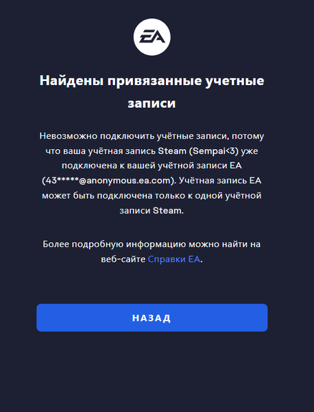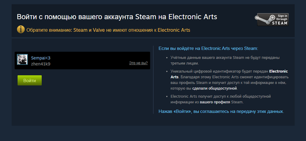 Не могу зайти на аккаунт EA через Steam