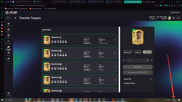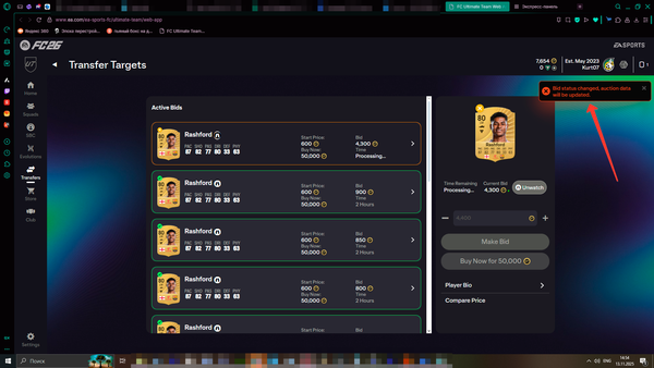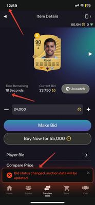 Здравствуйте, Когда я делаю ставку в приложении на телефоне fc26 companion app, (а так же в web приложении) выскакивает ошибка и я не могу сделать ставку, нажимаю несколько раз, время уходит и я проигрываю ставку. Помогает только перезапуск приложения, но пока оно перезапускается я упускаю время на торги и проигрываю и не успеваю сделать ставку, редко бывает так что успеваю, но постоянно приходится перезапускать приложение. Пробовал на телефоне, пробовал на ПК, так же пробовал на мобильном и домашнем интернете по wi-fi. Ошибка часто появляется, особенно когда нужно делать много ставок на множество карточек одновременно. писал в тех .поддержу, они сказали написать на форум. Все скриншоты подтверждающие приложу. Эта проблема уже не один год не только в версии fc26, но так же и в предыдущих версиях приложения она присутствовала, 2 года играю. Использовал браузер Chrome и Opera. В чате поддержки ответили, что проблема в серверах и уже давно, но я так много ставок пропустил.