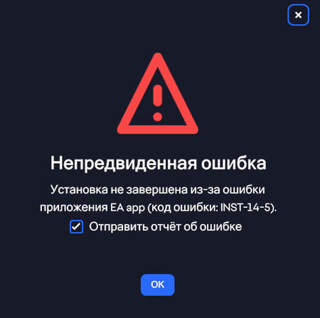 Добрый день подскажите в чем может быть проблема ? При установке приложения EA app возникает ощибка 14-5 С уважением, Lee p.s Буду признателен за решение проблемы!