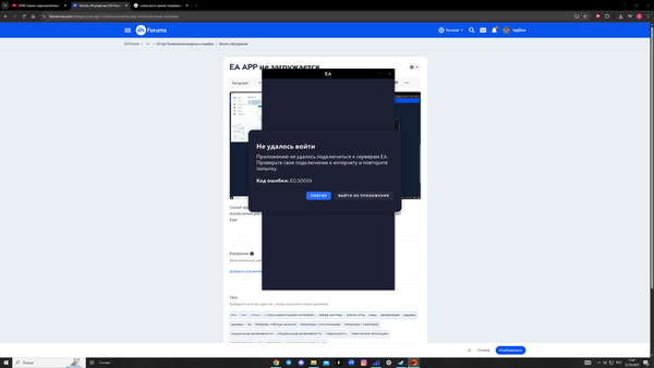 Синий экран ЕА, не запускает EA FC 26, 5 раз переустанавливал, обновлял драйвера, делал исключения для процессов в антивирусе, удалил сторонний антивирус, включал впн, ничего не помогает. (Когда запускаю фифу через стим - тоже переносит в ЕА и та же проблема)