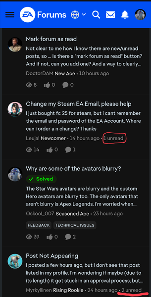 2. We are also tracking the bug about own posts showing as unread, and then sometimes not being able to get all posts marked as unread, despite having viewed the whole thread.