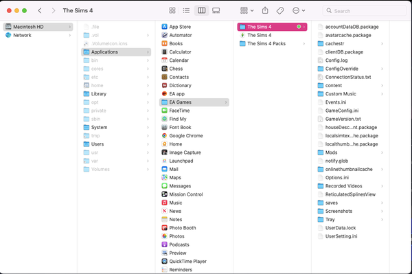 I looked up on the forum to see how to fix it. Everything said make sure your mods are in the same folder where your game runs. They were. Let me pause and go back a little. Earlier I said I had not been able to load the game. What finally let me was having the game run out of Macintosh HD/Applications/EA Games/The Sims 4