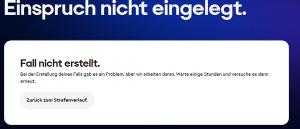 Hi EA_Pythia, danke für deine Rückfrage! Ja, ich konnte vor rund zwei Jahren schon einmal einen Einspruch einlegen – damals hat das Formular funktioniert, ich bekam eine Fallnummer, aber leider nur automatisierte Antworten, sodass ich irgendwann aufgegeben habe.