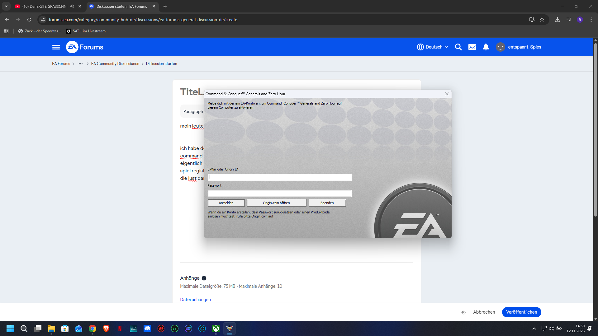ich habe den xbox gamepass ultimate und darüber den zugriff auf ea games bzw ea play darunter auch command & conquer alle teile ich wollte aber command & conquer generals spielen dies funktioniert eigentlich auch bis auf das ding das wenn ich es starte und die berechtigung bestätigt habe soll ich dasa spiel registrieren was aber schon erfolgt ist und das spiel aber es nicht versteht mittlerweile verliere ich die lust daran und möchte fast nicht mehr spielen habe fotos hochgeladen und ich verzweifle dabei