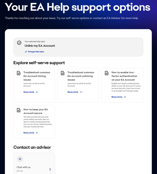 I have been trying for over a week to get into a live chat with EA support regarding unlinking my Xbox account from 2f********@disabled.ea.com - an email address that is obviously not mine.