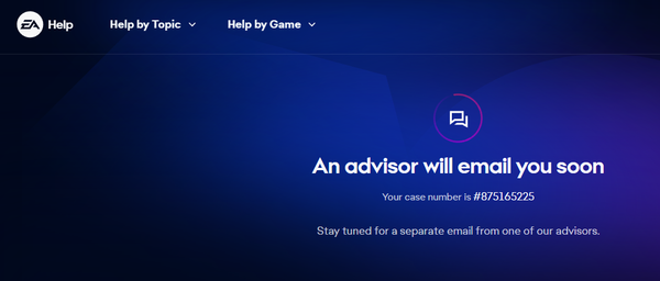 However no cases show up in my "Your cases" section of EA help despite receiving opening cases #967715288 #866029011 #806285781 #883465399 #999283356
