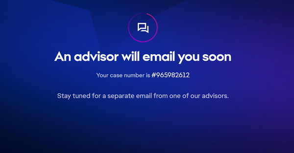 I changed the issue category to “Purchase Problem” and submitted another case. The system showed me a page with a new case number and said that an advisor would contact me.