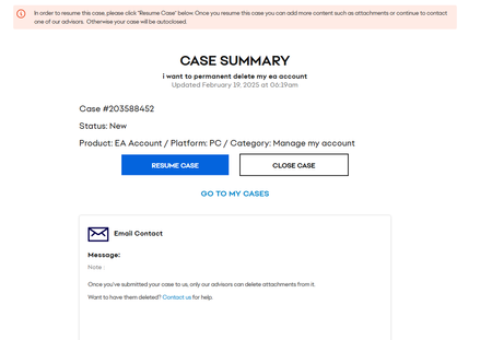 I've been trying to contact EA tech support for months now. Every time I create a ticket, it immediately closes by itself, without explanation. In the screenshot, I showed what the request page ...