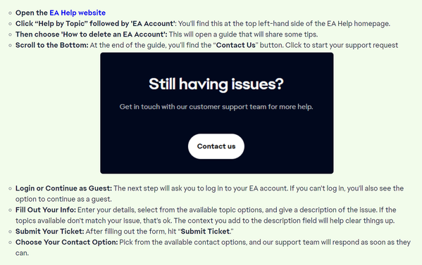 Even the contact "ticket" record didn't remain in my account, so I had literally no way to get in contact with EA help team at all...