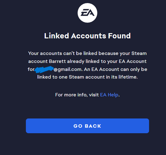 It won't let me link my Steam account to my EA account