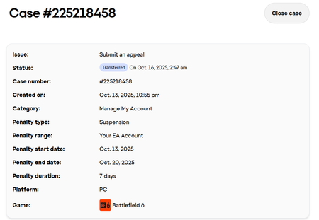 OR, they can have some leniency, look at the fact that this is the first infringement on my account that I've had since 2007, and shorten my suspension time so I can at least still play with the couple of days leave I have left to actually get some decent game time in. But no, it's almost like these decision are being made by AI, no empathy whatsoever.