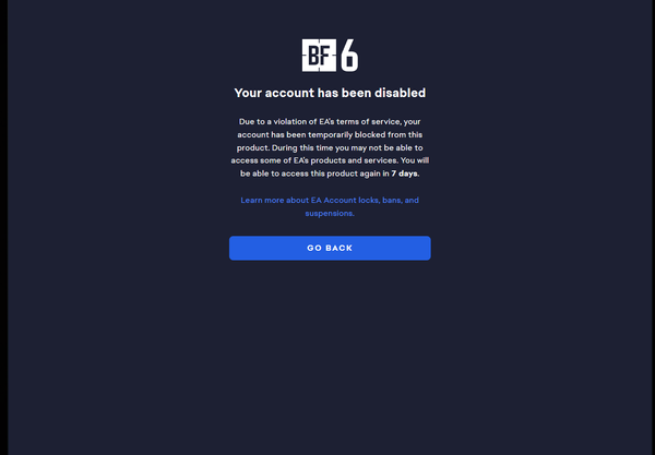 Are there other people whose accounts have been disabled for 7 days? I'm also trying to contact them by creating a ticket, but it's simply not being sent; I don't get a case ID. I'm curious if anyone else is having this problem or another issue with their account. Perhaps someone from EA can help me?