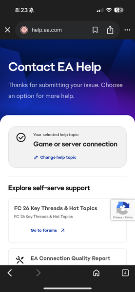 i have just submitted an issue with my FC26 ultimate team and I need assistance as I have some sort of bug on my ultimate team however I have no live chat shown when I scroll down?