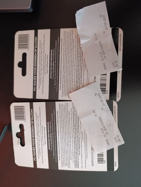 Vandaag heb ik twee 25 euro EA cadeakaarten gekocht in de Carrefour van Groenplaats. Na enkele uren proberen lukt het me niet om de codes te verzilveren en dat de kaart mogelijks niet geactiveerd zijn, dan later staat er dat de code niet klopt ondanks ik het meermaals heb nagekeken en zeker ben dat de codes correct ingetypt zijn.