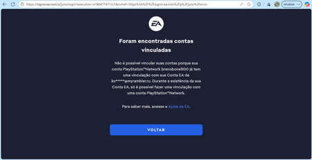 Quero vincular minha EA à PSN, mas já existe vínculo com conta que desconheço