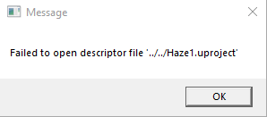 "Failed to open descriptor file '../../Haze1.uproject' when launching A Way Out