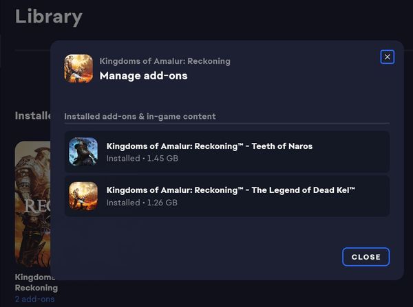 After many years I reinstalled KoA:R from my EA account including both DLCs as the following screenshot from the EA App (PC, Windows 11 64-bit) shows: